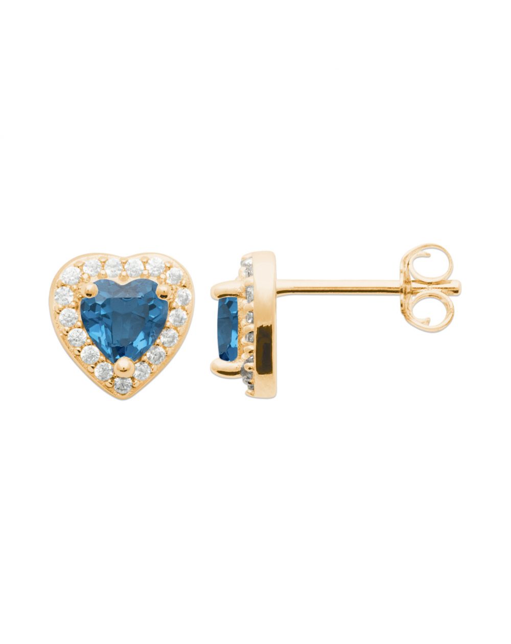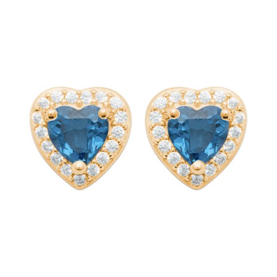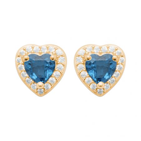 Boucles d oreilles coeur pierre bleu saphir plaqué or