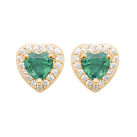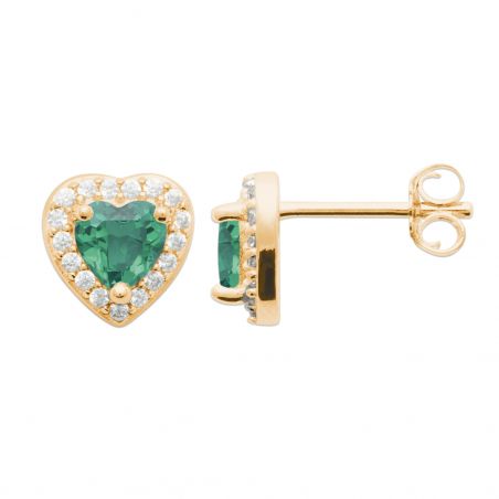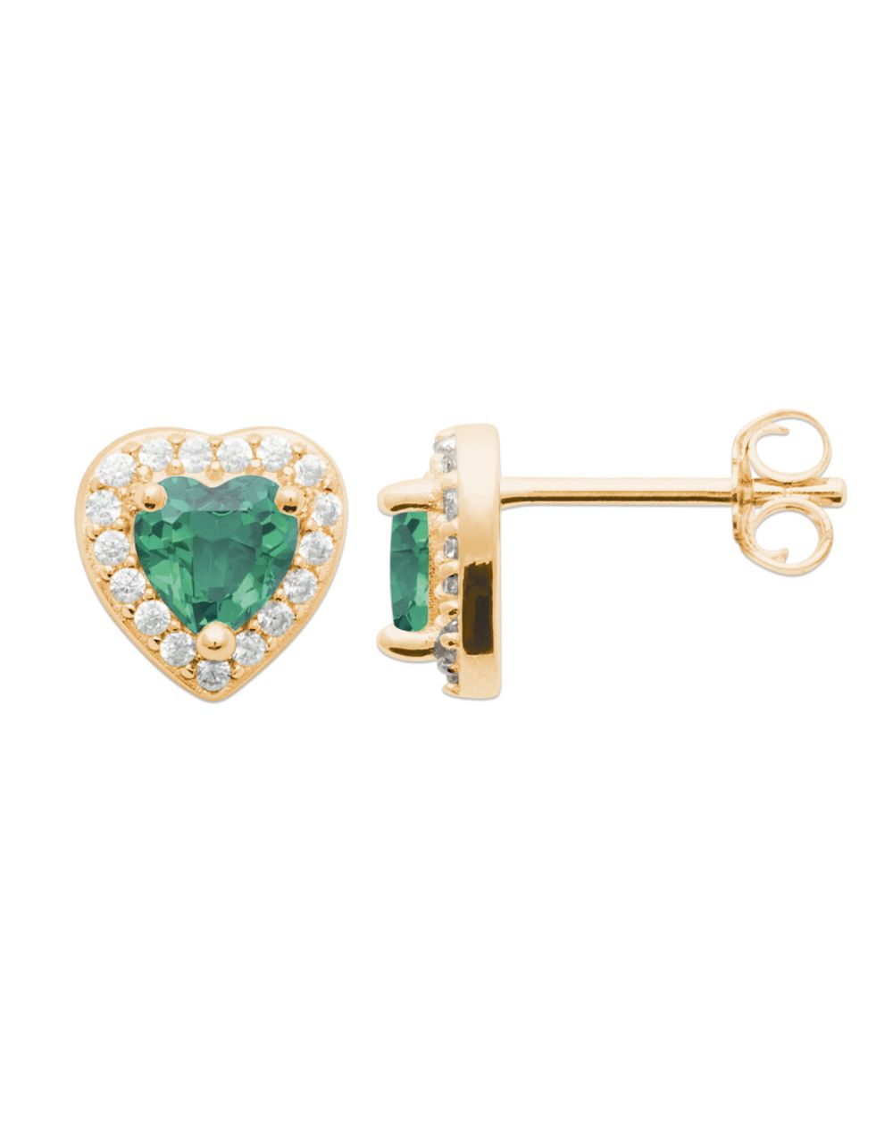 Boucles d oreilles coeur pierre vert émeraude plaqué or