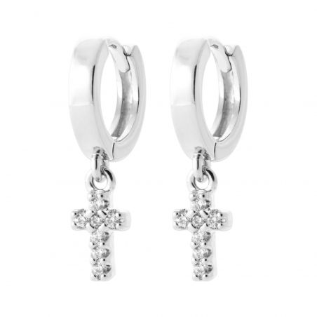 Créoles femme croix empierrées argent rhodié