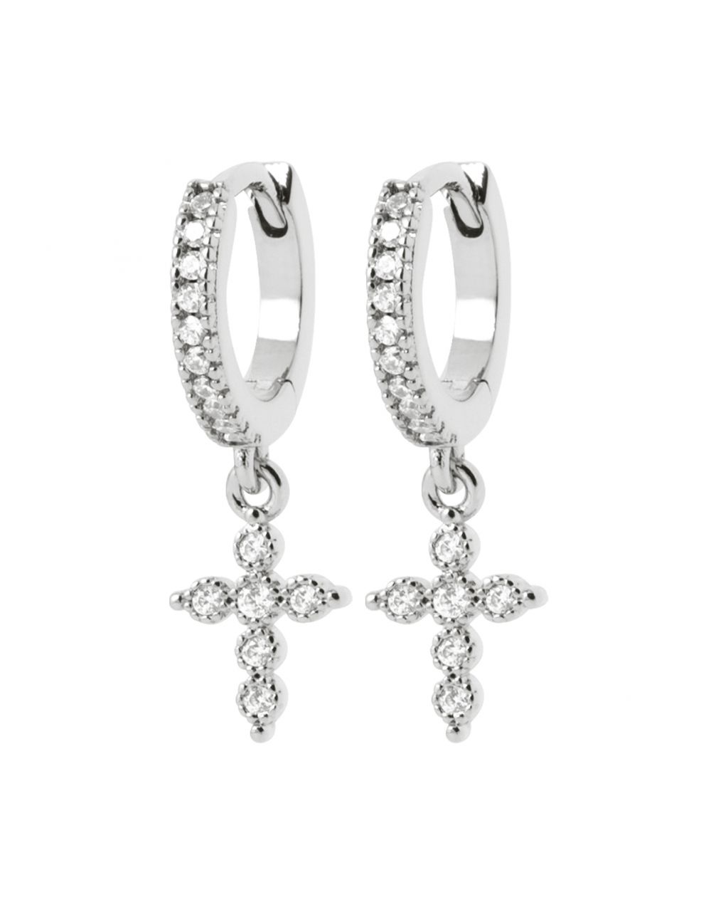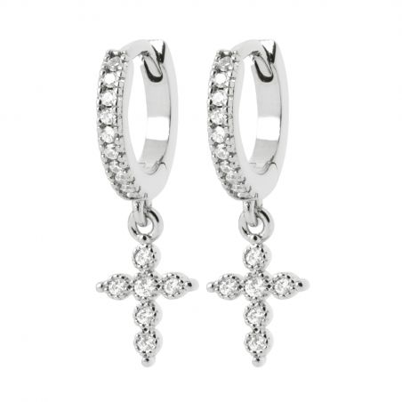 Créoles croix pendantes argent rhodié