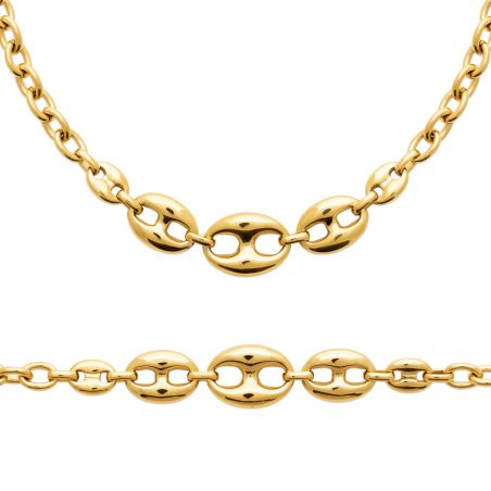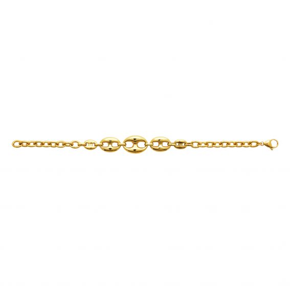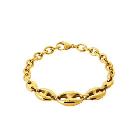 Élégant et sculptural, le bracelet Talia joue sur l’équilibre parfait entre force et féminité. Ses maillons ovales ajourés en acier inoxydable doré à l’or fin rappellent les chaînes marines traditionnelles, revisitées dans un style contemporain et raffiné.