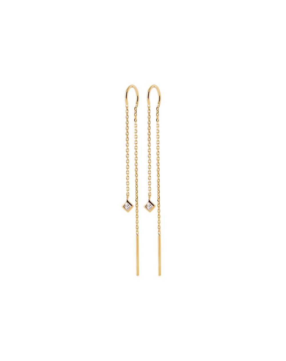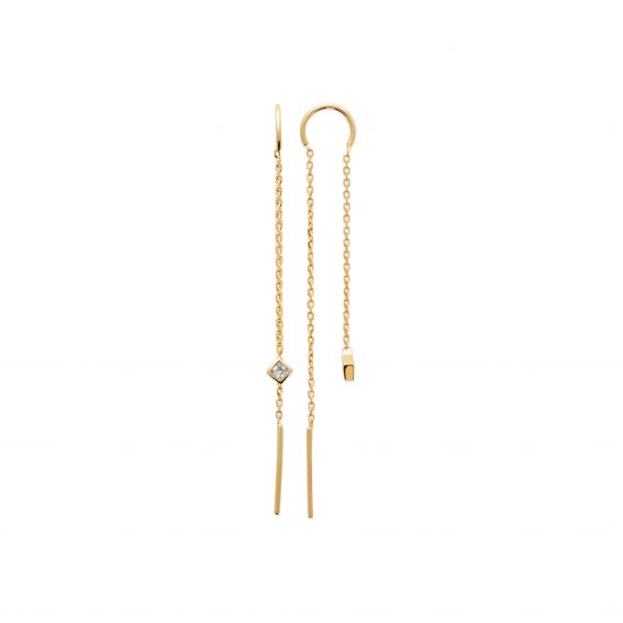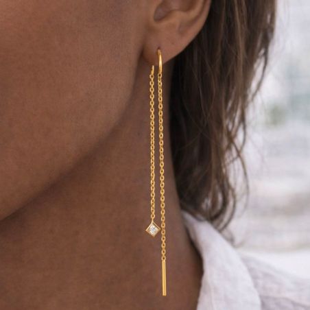 Inspirées de Harmonia, déesse de l’équilibre et de l’harmonie, ces boucles d’oreilles se distinguent par leur ligne fluide et aérienne. Les chaînes fines créent un mouvement délicat à chaque geste, tandis que le zirconium serti en forme géométrique apporte une touche de lumière maîtrisée.
