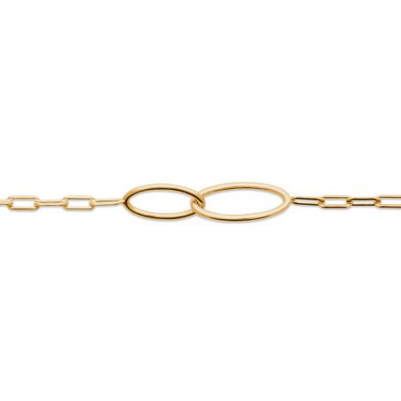 Deux anneaux allongés compose se Bracelet maille forçat en plaqué or.