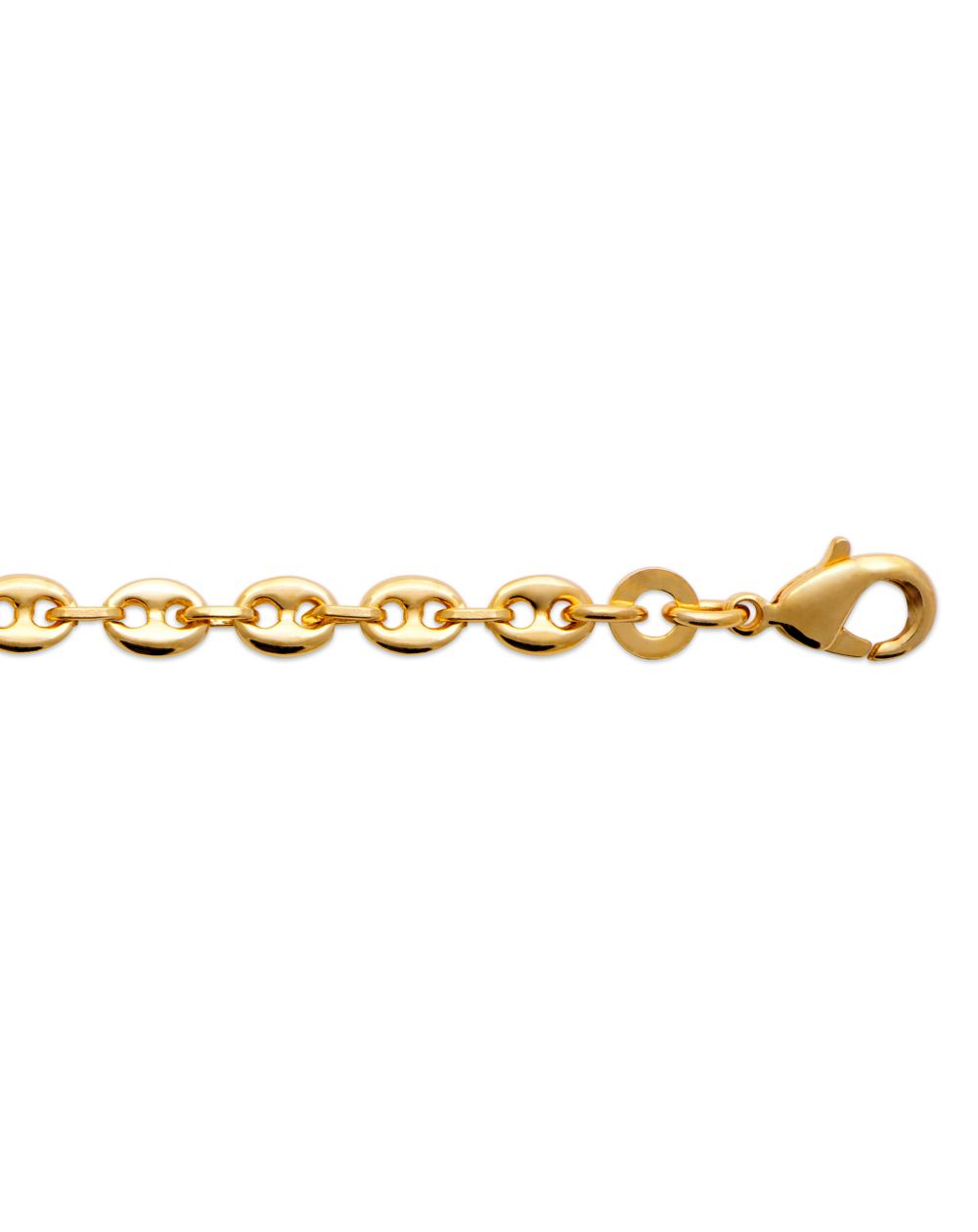 Affichez un style affirmé avec ce bracelet grain de café, entièrement plaqué en or 18 carats. Son design emblématique, composé de maillons arrondis et polis, allie modernité et élégance intemporelle.