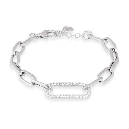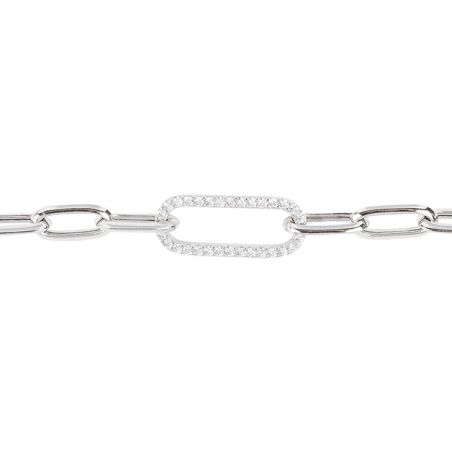 Ce bracelet pour femme est un bracelet doté de mailles dont une grande empierrée de pierres en oxyde de zirconium.