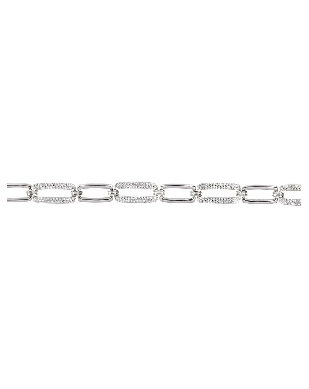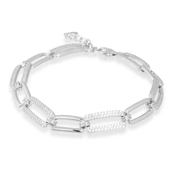 Ce bracelet pour femme est un bracelet en argent 925 formé de maille dont la moitié est empierré de pierres.
