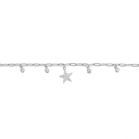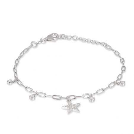 Ce bracelet en argent 925 pour femme est un bracelet doté d'une étoile sertie de pierres en oxyde de zirconium et de 4 petites pierres le long du bracelet. Ce bracelet est réglable en longueur de 18,5 à 16cm.
