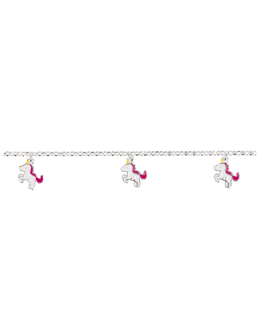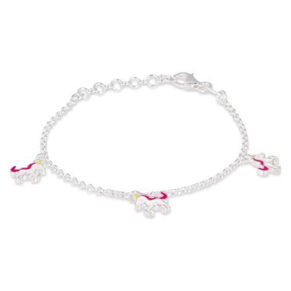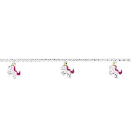 Ce bracelet en argent 925 pour enfant est un bracelet doté de 3 licornes pendantes émaillées mesurant 11mm de large sur 8mm de haut. Ce bracelet est réglable en longueur de 19cm à 16cm.