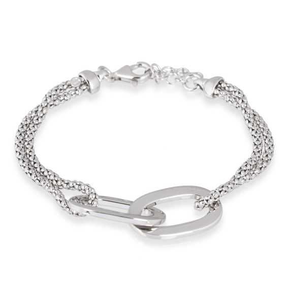 Ce bracelet en argent 925 est un bracelet formé de 2 grandes mailles. Ce bracelet est réglable en longueur de 21cm à 18cm.