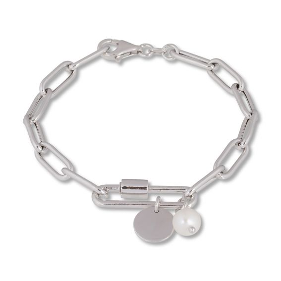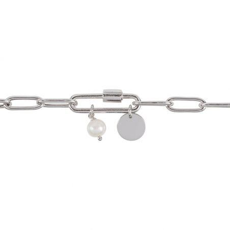 Ce bracelet en argent 925 pour femme est un bracelet formé de mailles, d'un maillon et d'une petite perle. La médaille peut être gravée de quelques lettres.
