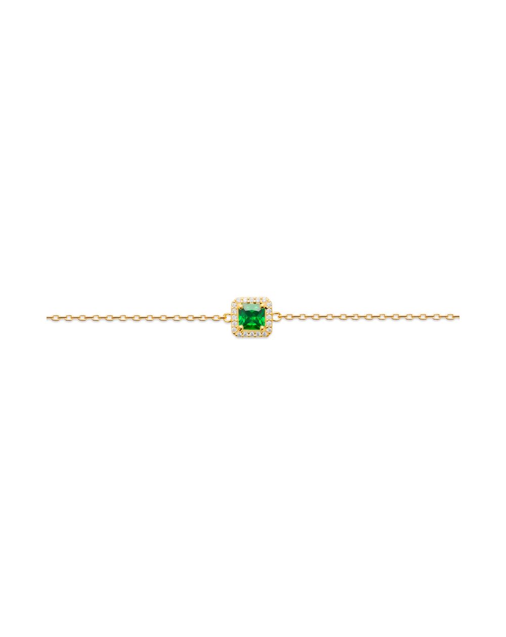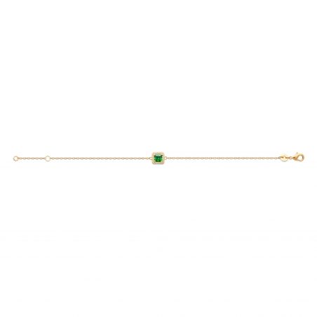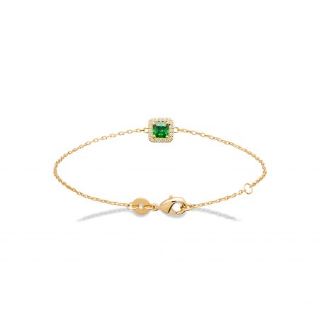 Ce bracelet plaqué or 18 carats est un bracelet serti de pierres en oxyde de zirconium. Celui-ci est réglable en longueur.