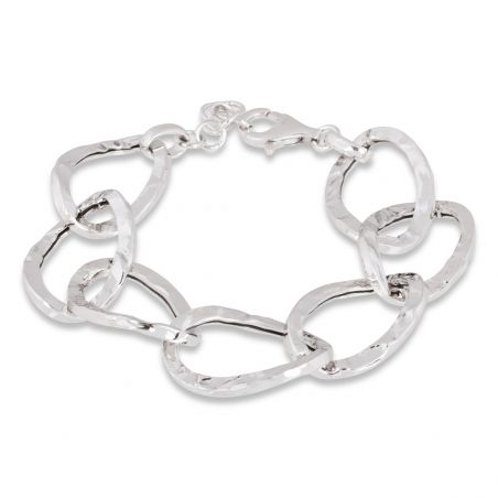 Ce bracelet en argent 925 est un bracelet doté de mailles martelées. La maille mesure 19mm de large sur 27mm de long.