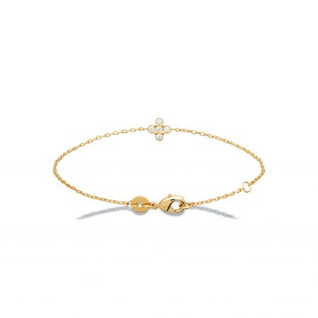 Ce bracelet pour femme est une chaine plaqué or 18 carats de haute qualité et dotée d'une croix