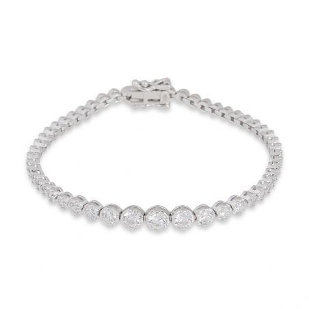 Ce bracelet est un bracelet tennis pour femme doté de différentes pierres en oxyde de zirconium de tailles différentes et formant un dégradé de pierres. La plus petite mesure 3mm et la plus grande 6mm.
