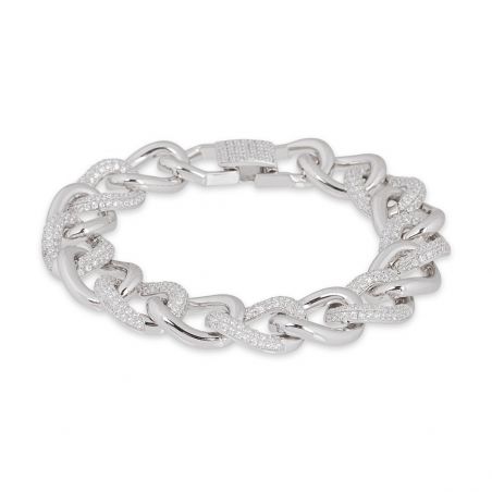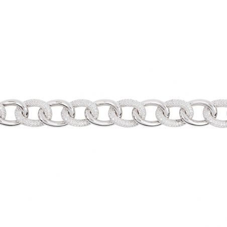 Ce bracelet est un bracelet en argent serti de différentes pierres en oxyde de zirconium sur la moitié des mailles. Celui-ci mesure 13mm de large et 19cm de long.