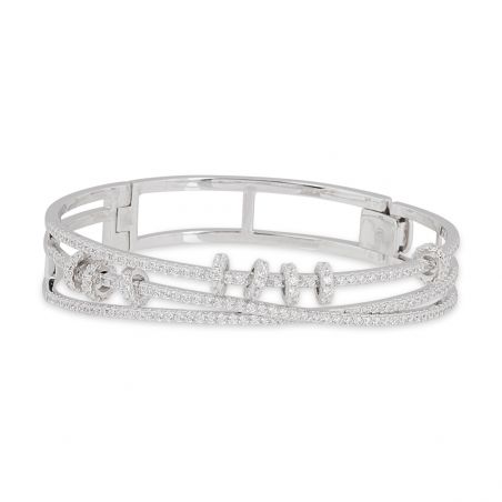Ce bracelet est un bracelet en argent 925 serti de pierres en oxyde de zirconium. Il est fait de lignes croisées empierrées.