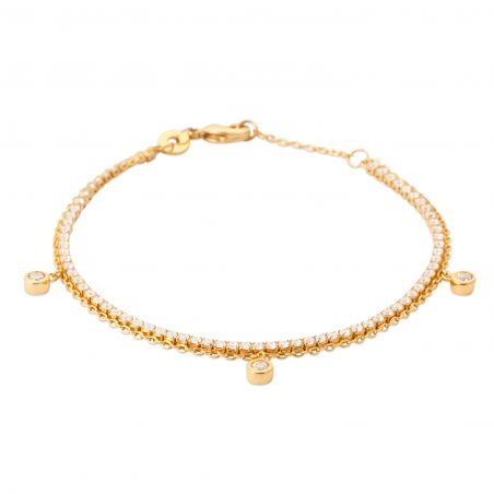Ce bracelet est un bracelet double plaqué or 18 carats serti de pierres en oxyde de zirconium. Ce bracelet est réglable en longueur de 16 à 18cm.