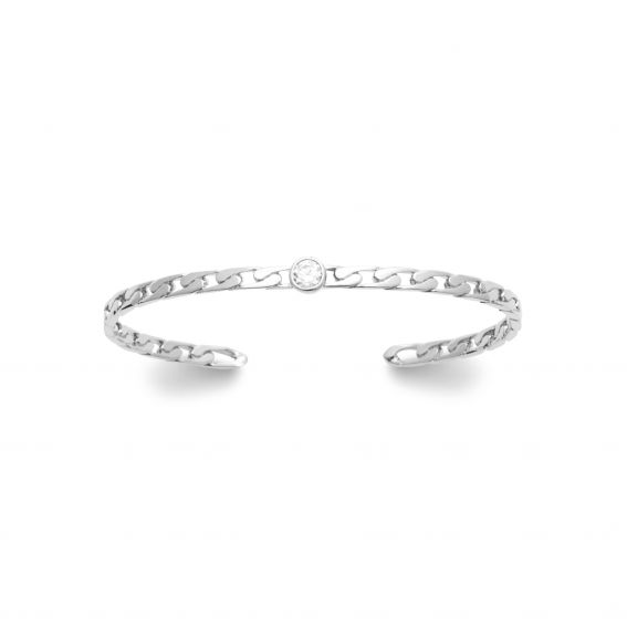Cette esclave est une esclave ouvert et composé de maille et d'un oxyde de zirconium, en argent 925.