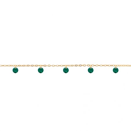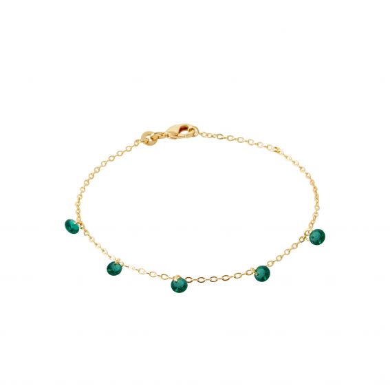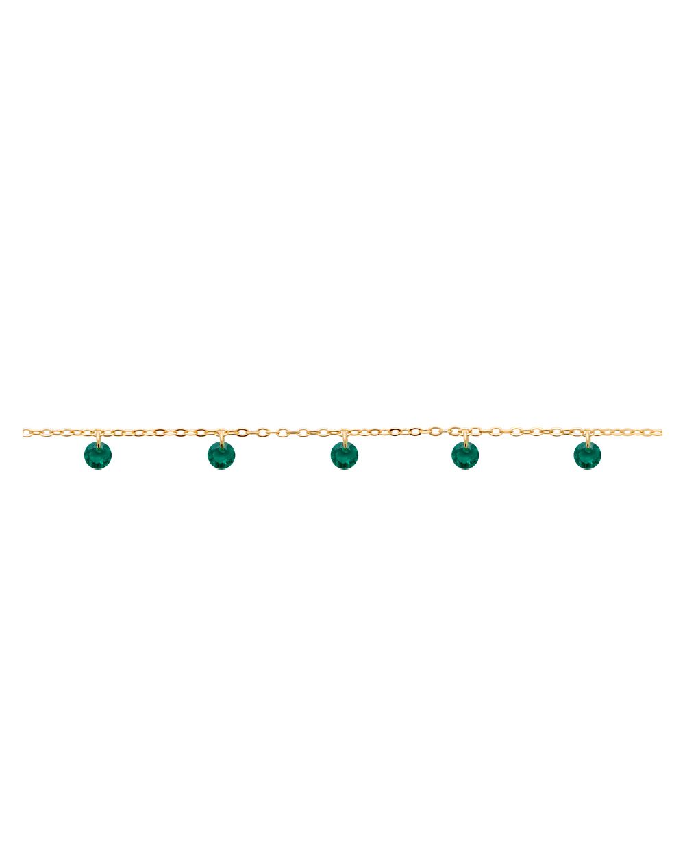 Ce bracelet est un bracelet en plaqué or 18k. Ce bracelet mesure 18cm de long et peut-être réglé en longueur.il est composé de multiples pastilles pendantes d'oxydes de zirconiums vertes.