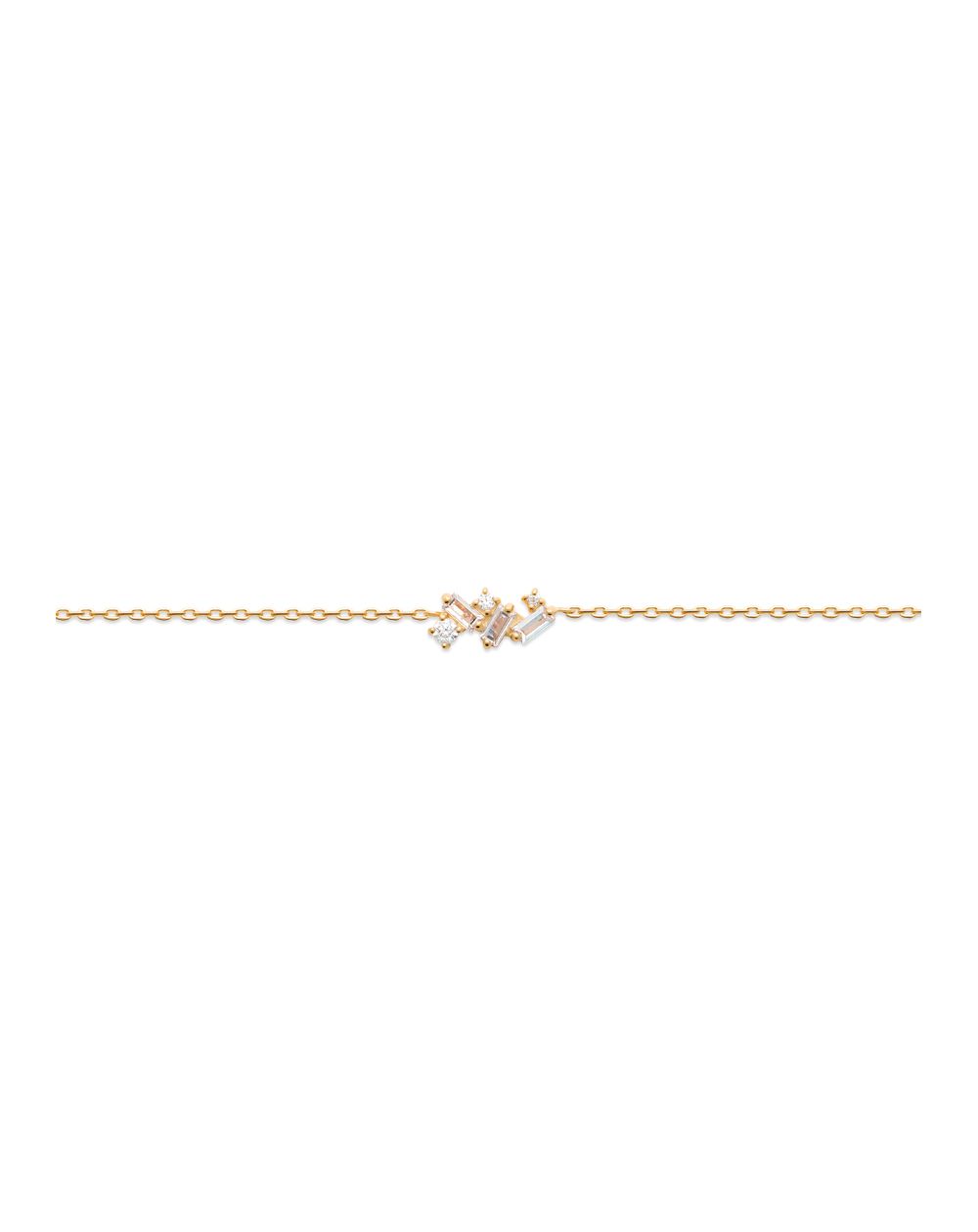 Ce bracelet de collection Selena est un bracelet en plaqué or 18k. Ce bracelet mesure 18cm de long et peut-être réglé en longueur. Il est composé de pierres de forme différentes en oxyde de zirconium.
