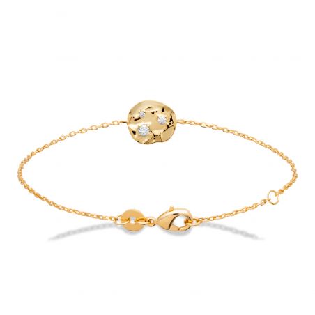 Ce bracelet est un bracelet en plaqué or 18k. Ce bracelet mesure 18cm de long et peut-être réglé en longueur.il est composé d'une plaque arrondie et d'oxydes de zirconiums.