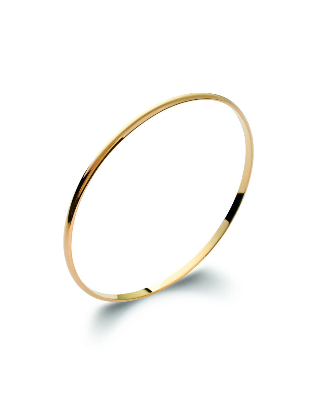 Ce bracelet élégant est en plaqué or 18 carats, un jonc fin au design classique et épuré, montrant une brillance subtile et une élégance intemporelle.