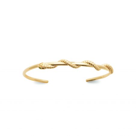 Esclave rigide plaqué or avec serpent aux yeux verts.