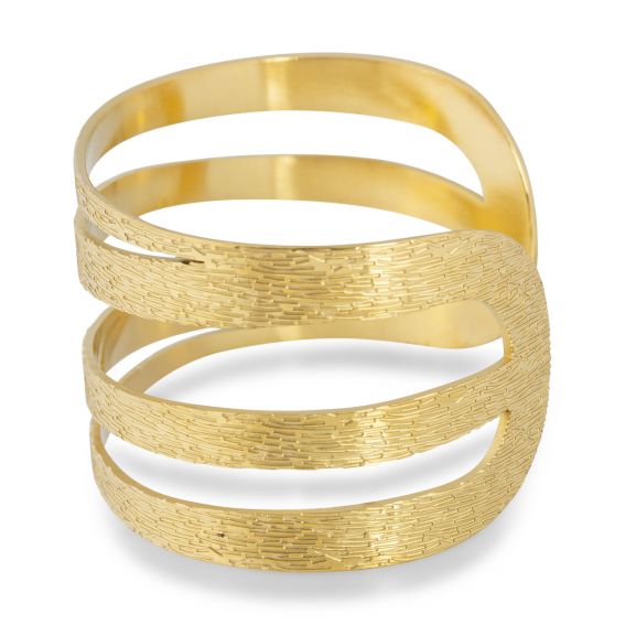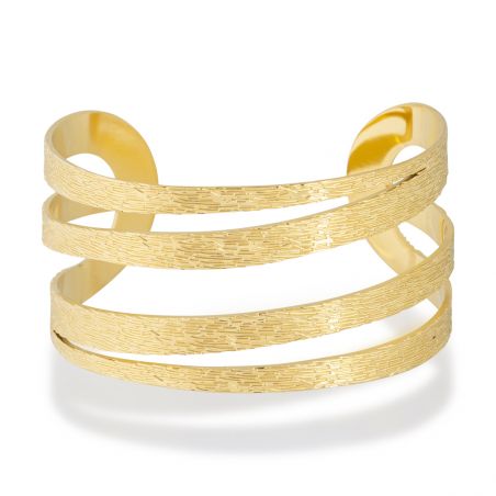 Ce bracelet jonc doré est un bracelet rigide pour femme mesurant 37mm de large. La surface est texturé.