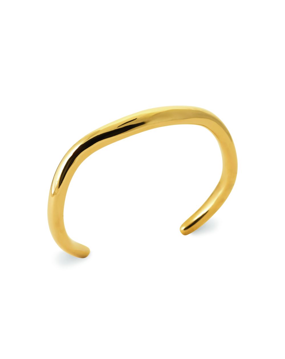 Ce jonc en acier doré affiche un design minimaliste et contemporain. Sa silhouette épurée et légèrement ondulée lui confère une élégance fluide et moderne. Facile à enfiler grâce à son ouverture ajustable, il s'adapte parfaitement au poignet pour un confort optimal. Idéal pour être porté seul pour un look raffiné ou en accumulation pour une touche tendance.