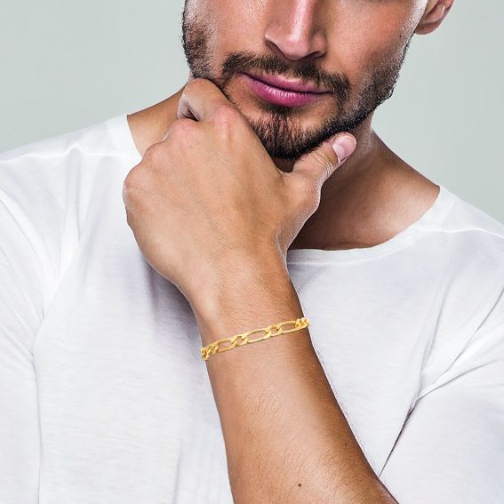 Intemporel et raffiné, le bracelet Maxence séduit par sa maille figaro emblématique, composée d’un enchaînement de maillons longs et courts parfaitement polis. Fabriqué en plaqué or 18 carats, il allie solidité et élégance pour un rendu lumineux et affirmé.