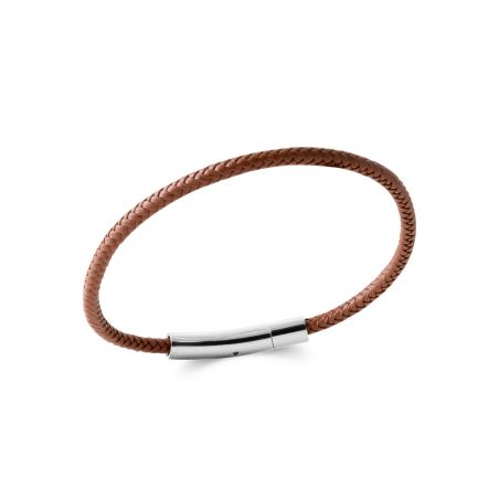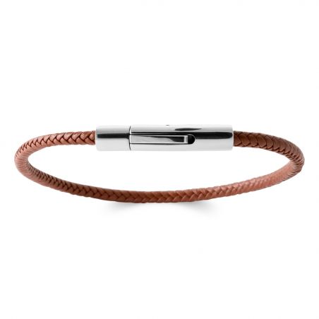 Alliant authenticité et modernité, le bracelet Dakota séduit par la simplicité élégante de son cuir brun tressé et la brillance subtile de son fermoir en acier inoxydable. Son design minimaliste en fait un accessoire discret mais stylé, idéal pour compléter un look casual chic ou urbain raffiné.