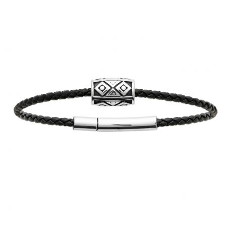 Inspiré des symboles ethniques, le bracelet Arizona associe un cuir noir tressé à une perle centrale en acier inoxydable gravée de motifs géométriques tribaux. Un bijou à la fois discret et distinctif, qui mêle traditions anciennes et esthétique contemporaine.