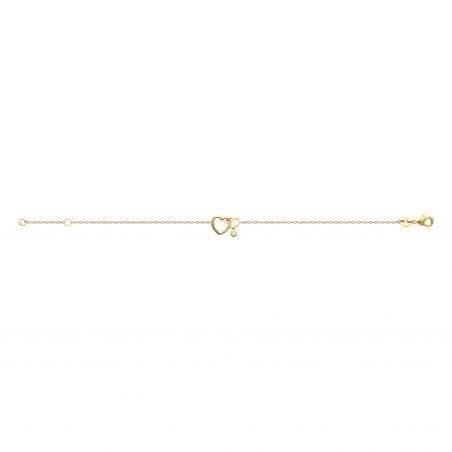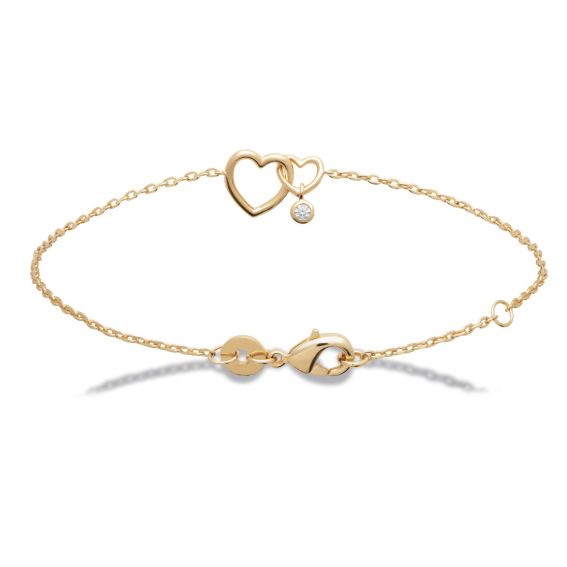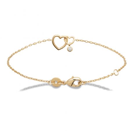 Ce bracelet double coeur est un bracelet plaqué or 18k formé de 2 coeurs enchevêtrés et serti d'une pierre en oxyde de zirconium en breloque. Ce bracelet est réglable en longueur.