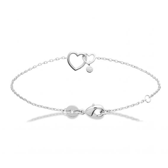 Ce bracelet double coeur est un bracelet en argent 925 rhodié et qui est formé de 2 coeurs enchevêtrés et serti d'une pierre en oxyde de zirconium en breloque.