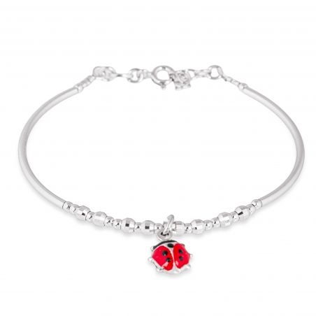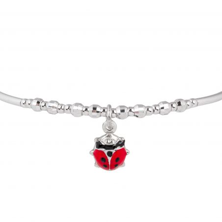 Ce bracelet enfant coccinelle est un bracelet semi-rigide en argent 925 doté d'un coccinelle émaillée mesurant 10mm de haut. Ce bracelet mesure 17cm de long et peut-être ajusté en longueur.