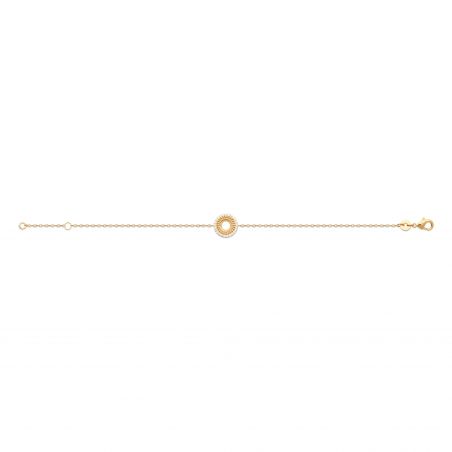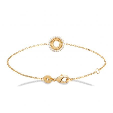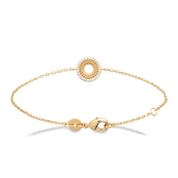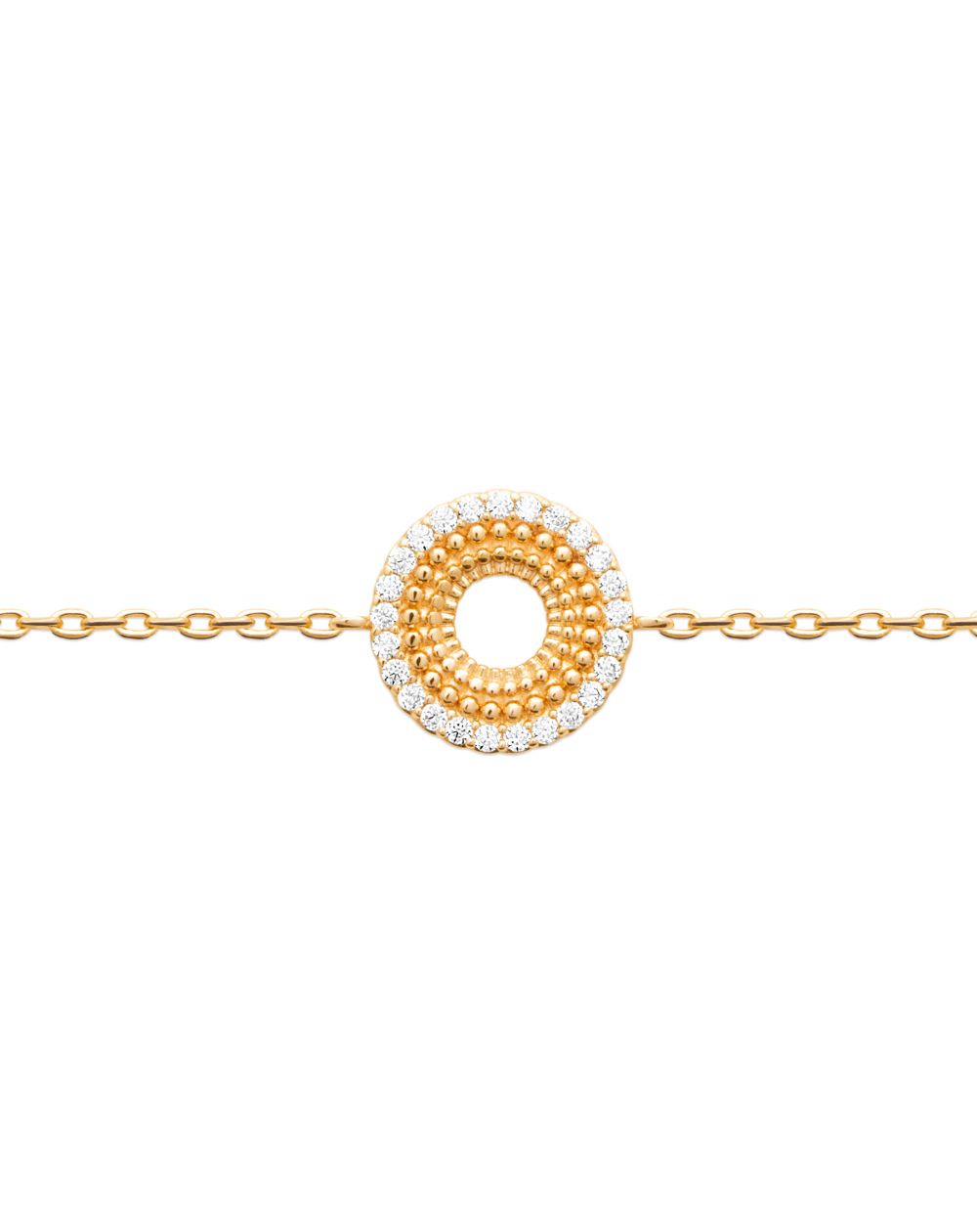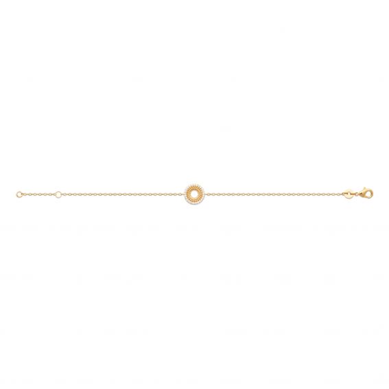 Orné d’oxydes de zirconium étincelants, le centre perlé du bijou capte magnifiquement la lumière pour un rendu raffiné et sophistiqué. Fin et délicat, ce bracelet s’ajuste parfaitement au poignet pour un confort optimal et une allure élégante en toute occasion.