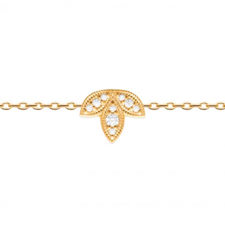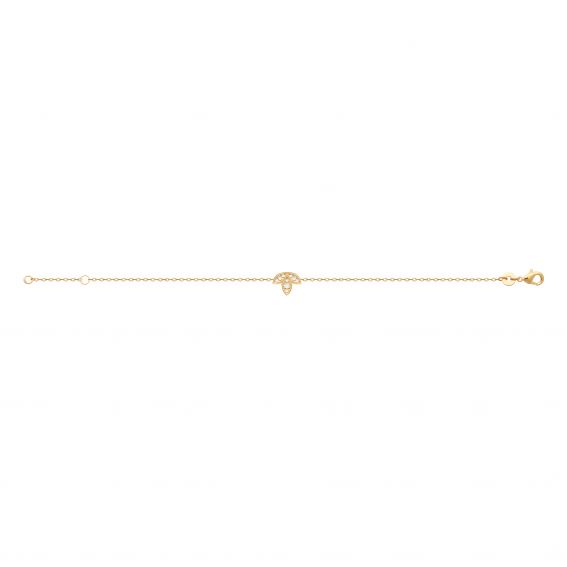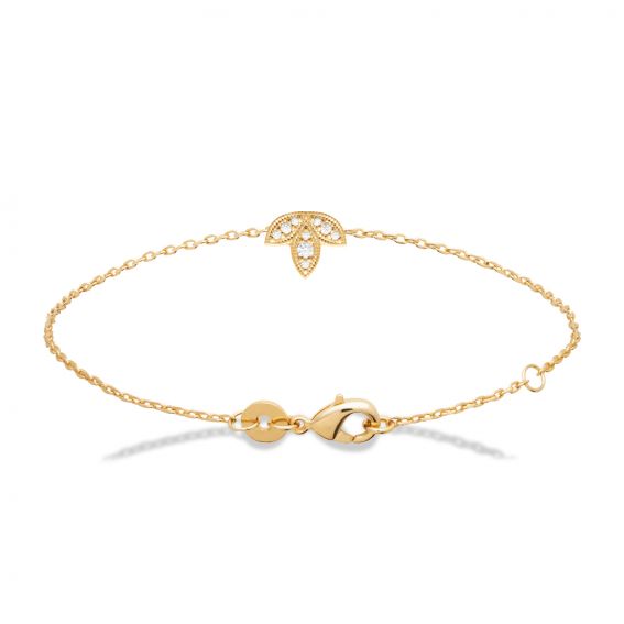 Ce bracelet plaqué or 18 carats pas cher est un bijou délicat et lumineux, idéal pour sublimer le poignet avec élégance sans compromis sur le budget. Son motif central orné de pierres blanches scintillantes apporte une touche raffinée et féminine, parfaite pour une tenue habillée comme pour le quotidien.
