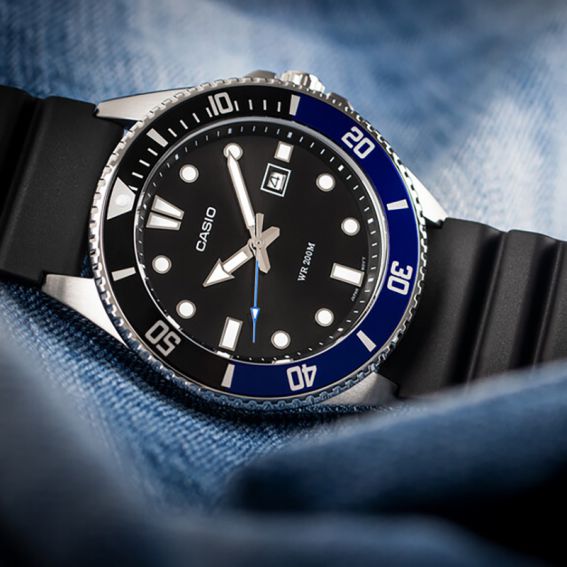 Cette montre MDV-107-1A2VEF de marque Casio est une montre homme dont le méchanisme est un méchanisme quartz/pile. Le verre de cette montre est un verre minéral ayant subi un traitement thermique pour le rendre résitant aux rayures. Le bracelet de cette montre Casio est un bracelet Résine.
