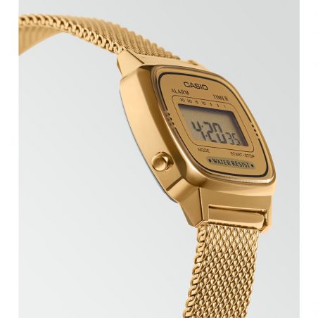 Cette montre LA670WEMY-9EF de marque Casio est une montre mixte dont le méchanisme est un méchanisme quartz/pile. Le verre de cette montre est un verre minéral ayant subi un traitement thermique pour le rendre résitant aux rayures.