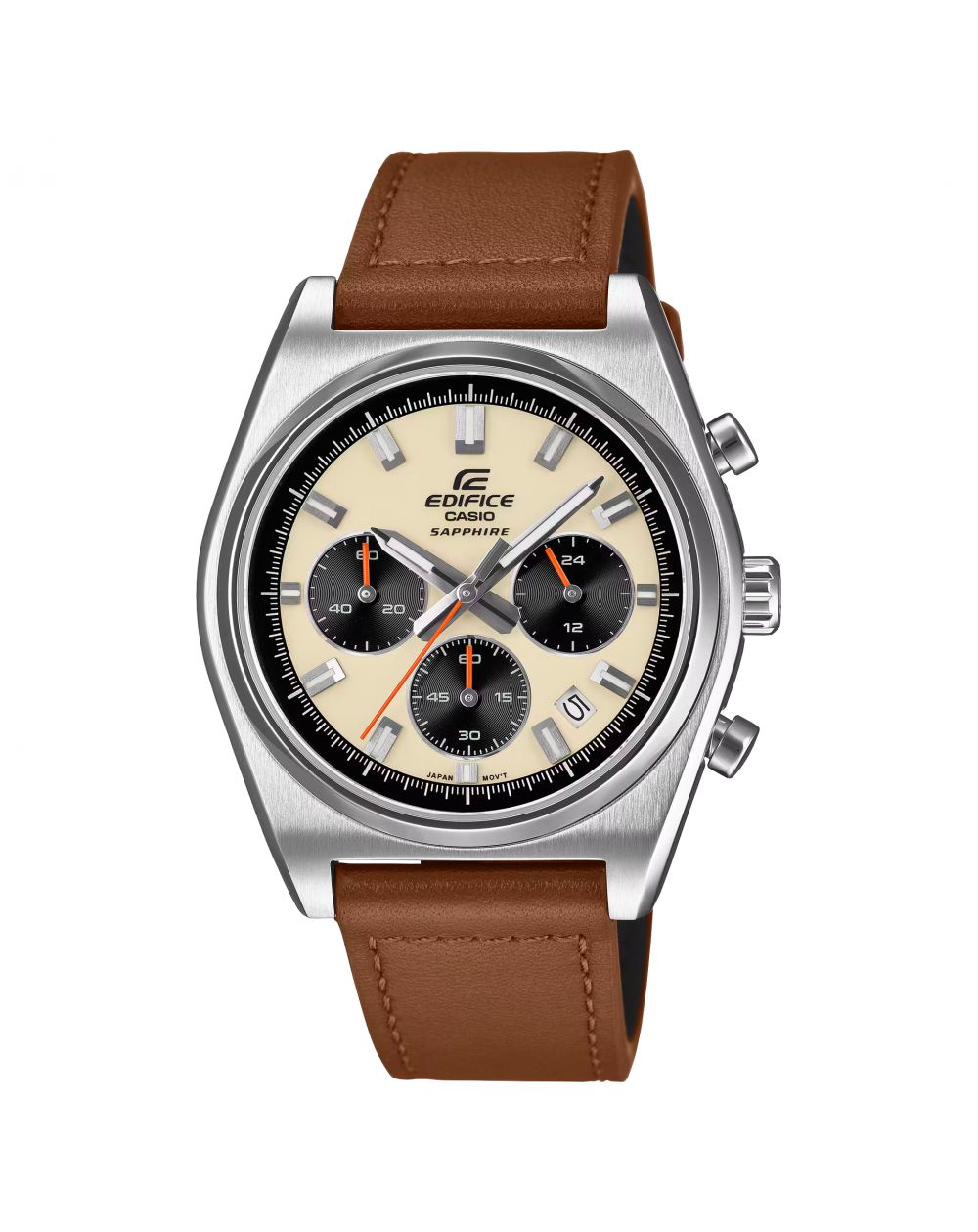 Plongez dans l’univers EDIFICE avec ce chronographe inspiré de la silhouette racée des voitures de sport classiques. La montre Casio EFB-730L-7AV combine un design dynamique et une élégance affirmée, portée par un boîtier en acier inoxydable aux lignes maîtrisées et à la taille désormais plus compacte pour un look plus rapide, plus affiné.
