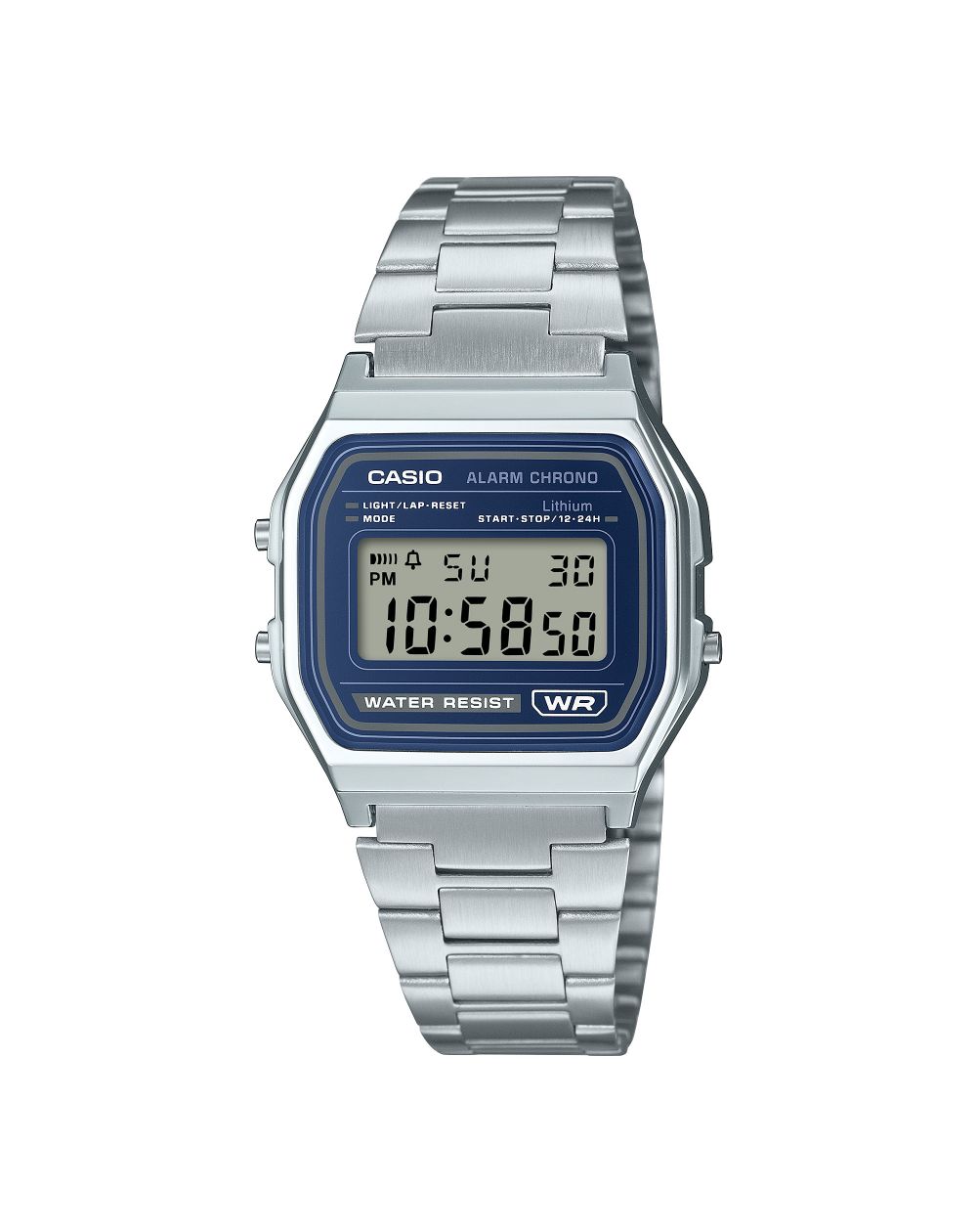 Montre Casio Vintage A158WEA-2 argentée à cadran bleu – montre digitale rétro avec bracelet acier inoxydable
