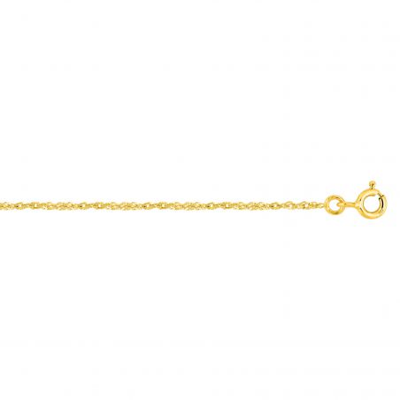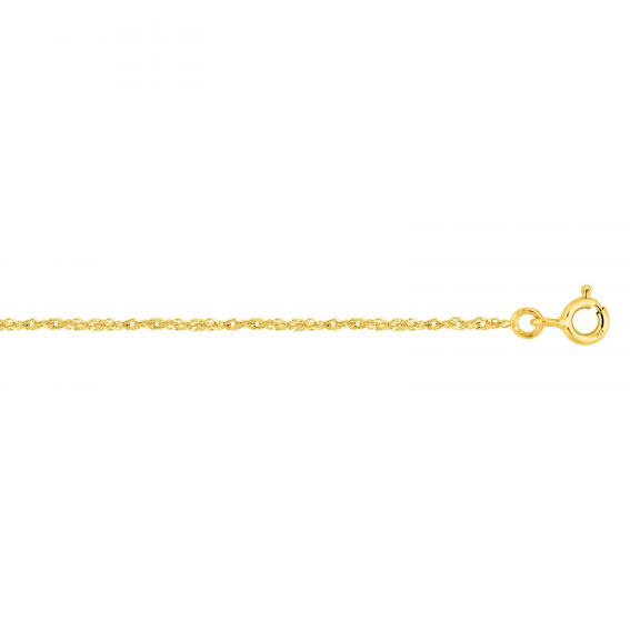 Cette chaine en or 9 carats est une chaine maille singapour disponible en différentes longueurs et mesurant 1,3mm de large.