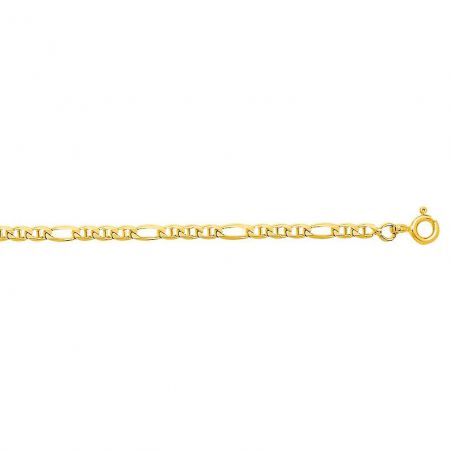 Cette chaine en or 9 carats est une chaine maille figaro alternée 1+3 disponible en différentes longueurs et mesurant 3mm de large.