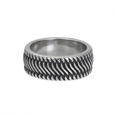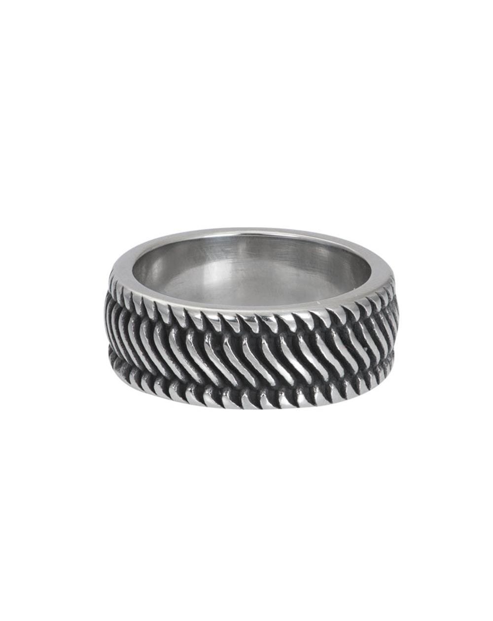 Cette bague de la marque iXXXi MEN est une large bague pour homme en acier inoxydable lisse avec un aspect argenté antique sur toute la bague.