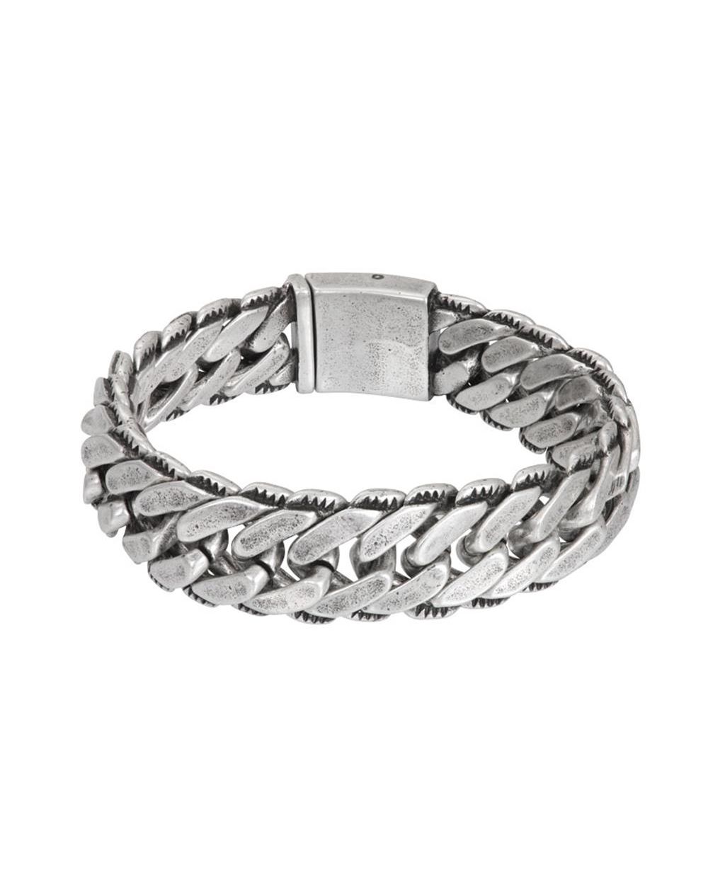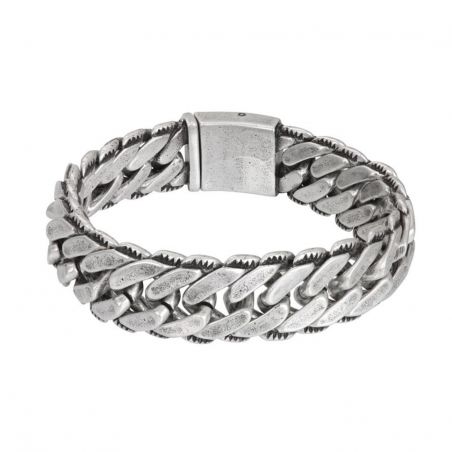 Ce bracelet de la marque iXXXi est un bracelet en acier inoxydable qui comporte un maillon plat tressé en une rangée de deux maillons de large avec un embossage des deux côtés.