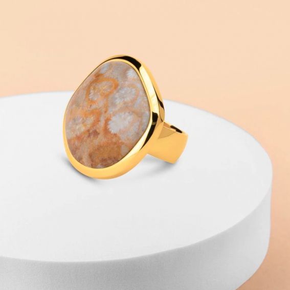 Cette pierre se visse sur une bague de la collection Kosmic. Elle attire également le regard dans 5 types de pierres précieuses différentes. La pierre Shaped Disk a un diamètre de 32 mm et est disponible en plaqué argent ou or.