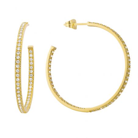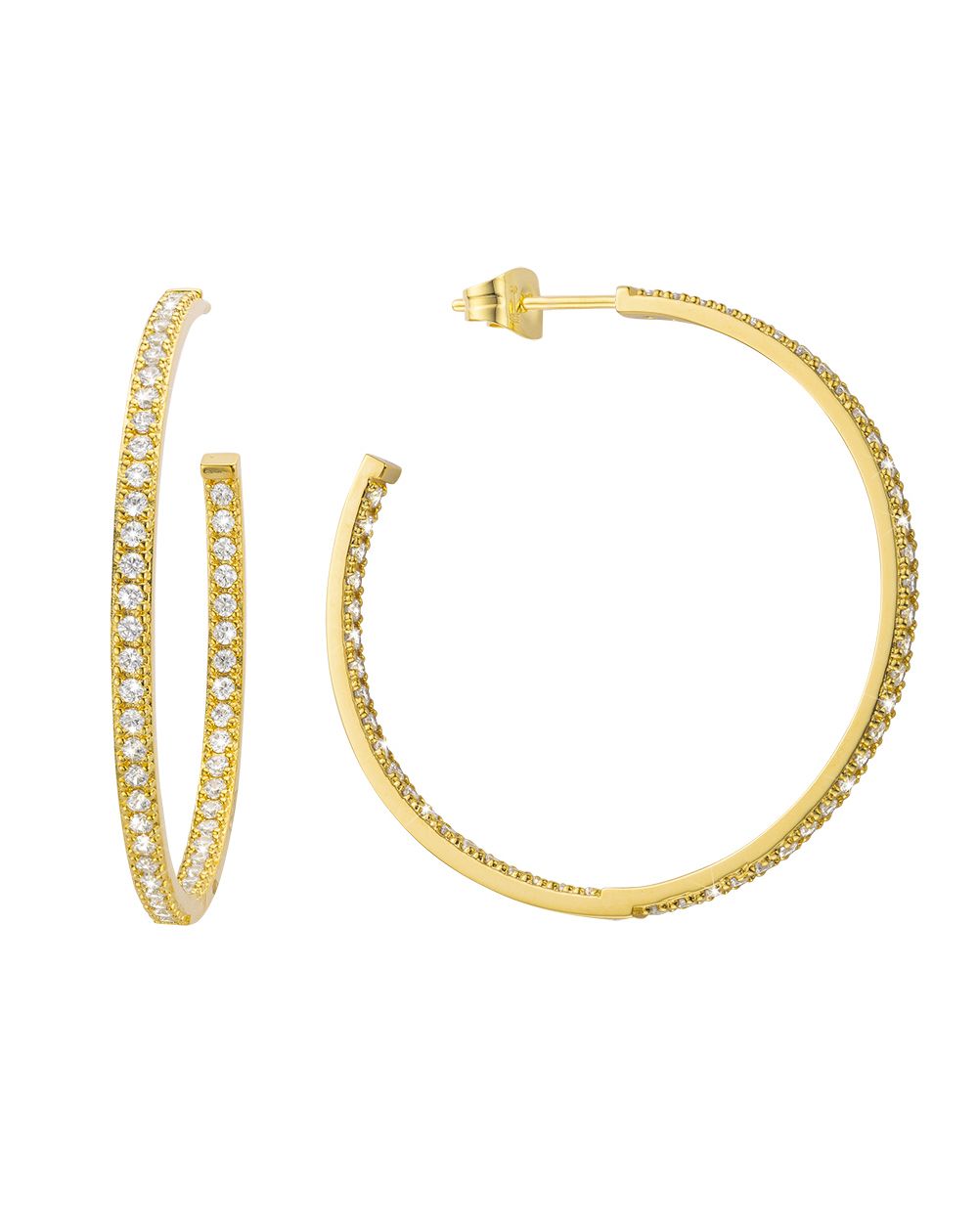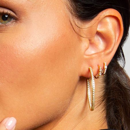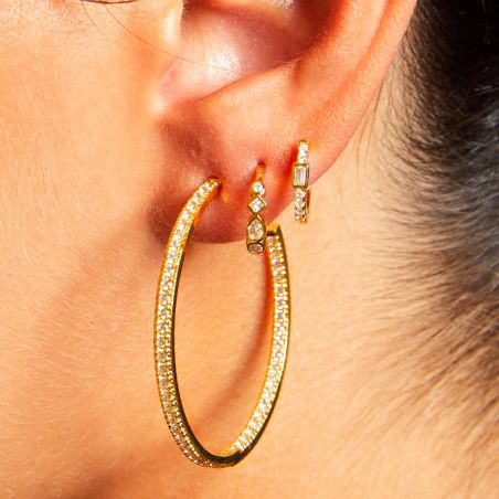 Ces boucles d'oreilles de marque Mya Bay plaquées or 24 carats sont ornées de fines pierres scintillantes qui dansent à chaque mouvement. Leur design minimaliste et sophistiqué en fait un accessoire polyvalent, parfait pour rehausser n'importe quelle tenue, du jour à la nuit.