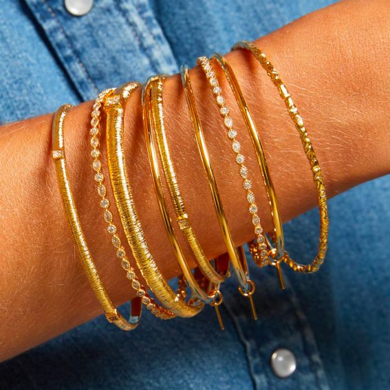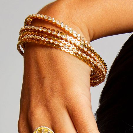 Le bracelet Mya Bay est doré à l'or fin 24 carats et est inspiré du bracelet infinity mais sans pierres.
