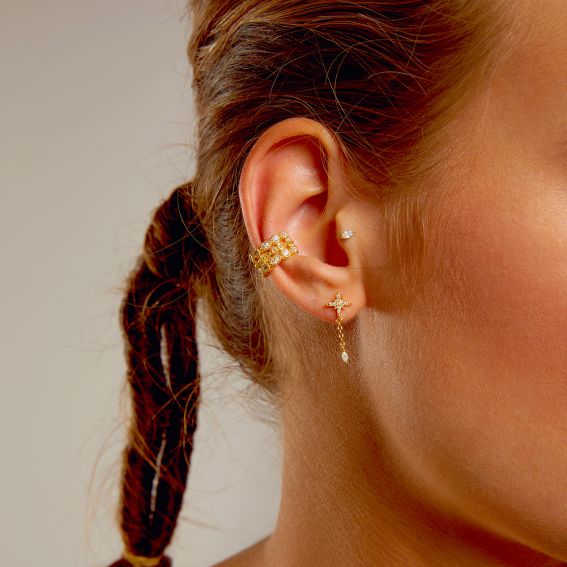 Qu'est qu'un Earcuff? C'est un anglicisme signifiant littéralement « manchette d’oreille » . C'est une boucle d'oreille qui peut parfois s’accrocher au lobe mais qui orne principalement le cartilage.