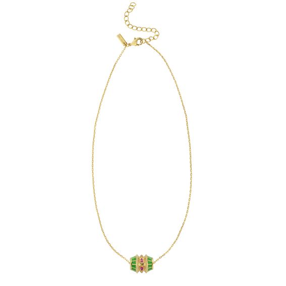 Le collier Mya Bay Talisman GREEN est une pièce avec de l'or fin 24 carats et fabriquée à partir de 100% d'or et d'argent recyclés. Il allie l'élégance protectrice du talisman à la fraîcheur apaisante du vert.